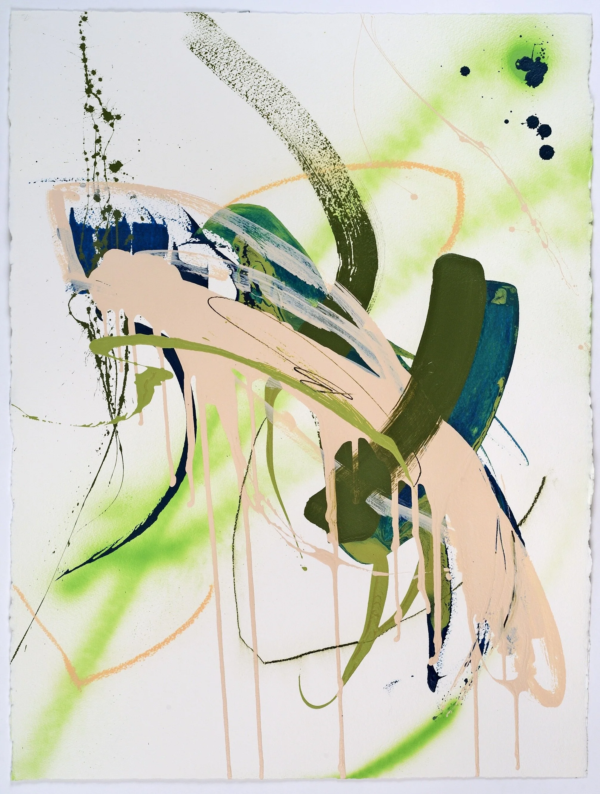 Rooted in relentless and eclectic curiosity, scientific training, and a love for the visceral qualities of the materials themselves, each piece begins as an experiment. Like my science, I want each painting to teach something that is not already known. Through bold gestural marks, paint poured from above, abundant swipes, or flooded pools of pigment coaxed by gravity - layers build and the distinctive identity of the painting begins to reveal itself.